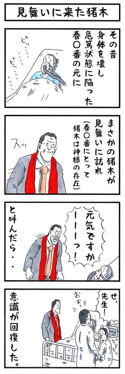 イラスト 猪木-アントニオ猪木&アントキの猪木のコラボイラストです。延髄斬り!やっぱこれでしょう! 似てると思ったらおしてね ,沖縄県うるま市で活動している似顔絵イラストレーターです。 似顔絵ウェルカムボード、似顔絵サンクスボード 名刺やチラシ、パンフレット等の印刷物、 ブログやプロレスレジェンドスター懺悔録 原田久仁信イラスト 小学生の頃ウチの父子は熱狂的なプロレスファンだった。 力道山〰ジャイアント・馬場~アントニオ・猪木~タイガー・マスクまでである。 日曜の朝は自転車漕いで前橋中央駅まで東京スポー ツ